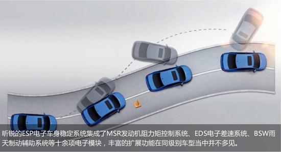 昕锐ESP系统集成的多项功能为雨天行车提供了可靠的保障:MSR发动机阻力矩控制功能可在驾驶员突然松开油门或者发动机高转速下减挡时自动介入,避免前轮打滑;在湿滑路面起步时,EDS电子差速功能将自动对驱动轮施加制动,以防止驱动轮打滑;而BSW雨天制动辅助功能则可在雨天自动清除制动盘上的水珠,保证车辆制动效果。